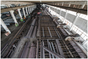 流水線:九鋼公司擁有440三輥機開坯后接十連軋生產線及一條480六機架橫列式型鋼生產線。配套金加工車間兩跨,精整車間一跨,實驗室一所。